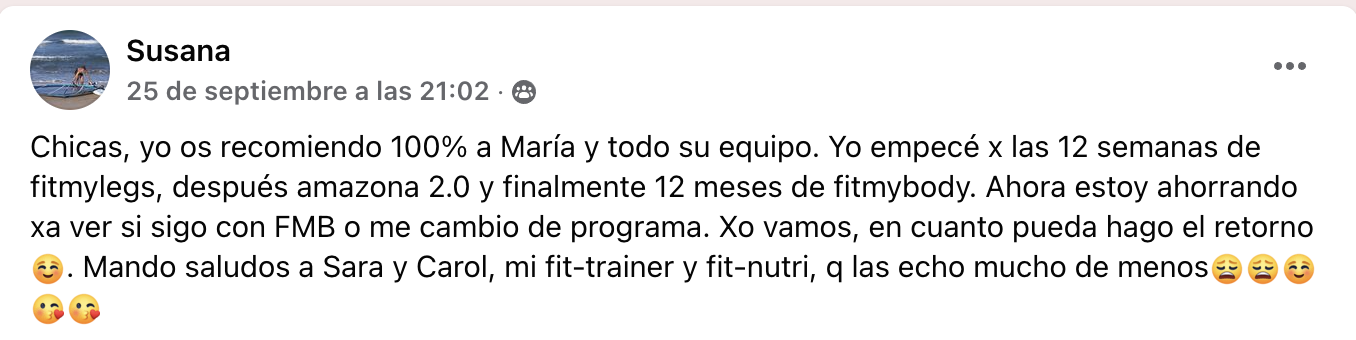 Una plataforma de entrenamiento y nutrición con la que, desde 2018 hemos ayudado a más de 4.000 mujeres a reducir la celulitis y la flacidez, a ganar masa muscular, en definitiva a mejorar su salud y vitalidad con la nutrición sincronizada con las hormonas y con el entrenamiento específico para mujeres a través nuestros programas: Fitmylife Pro, Fitglow, Fit-Express, Fitmylife, Amazona 2.0, Fitmybody…